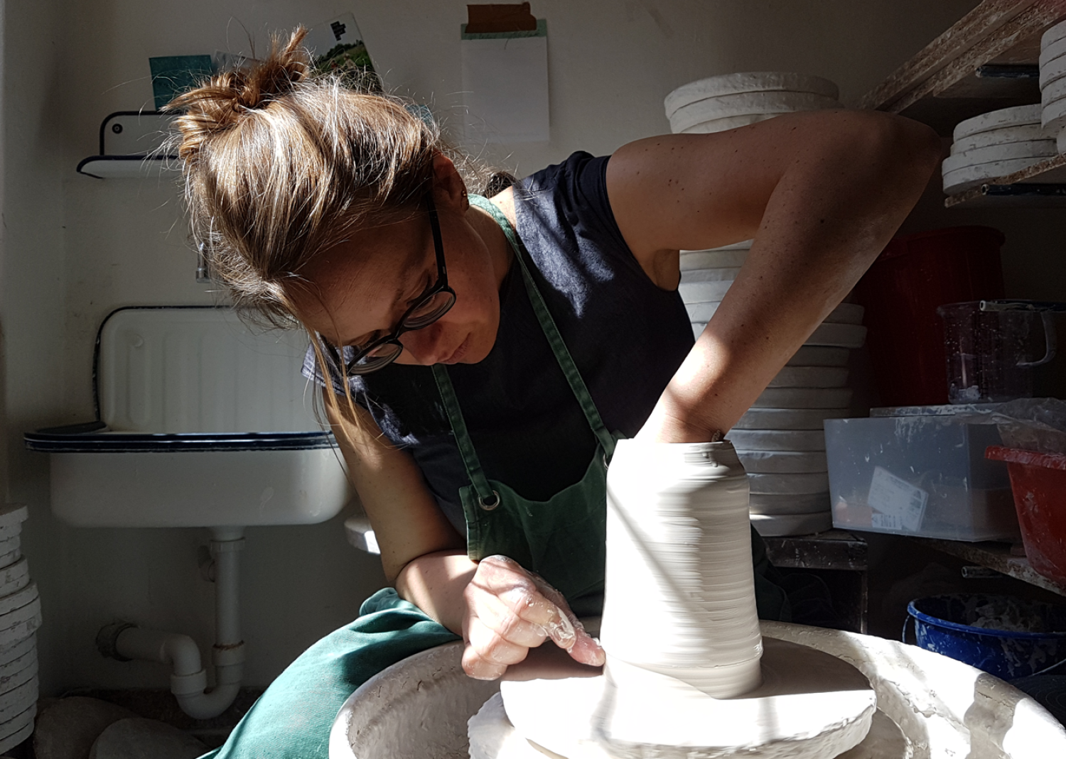 Unterstützt von einem Stipendium der Carl-Duisberg-Gesellschaft konnte sie in diesem Jahr ihre keramischen Fähigkeiten in außergewöhnlichen Projekte vertiefen, englisches Porzellan und neue Verfahren zur Oberflächengestaltung von Keramik kennenlernen.